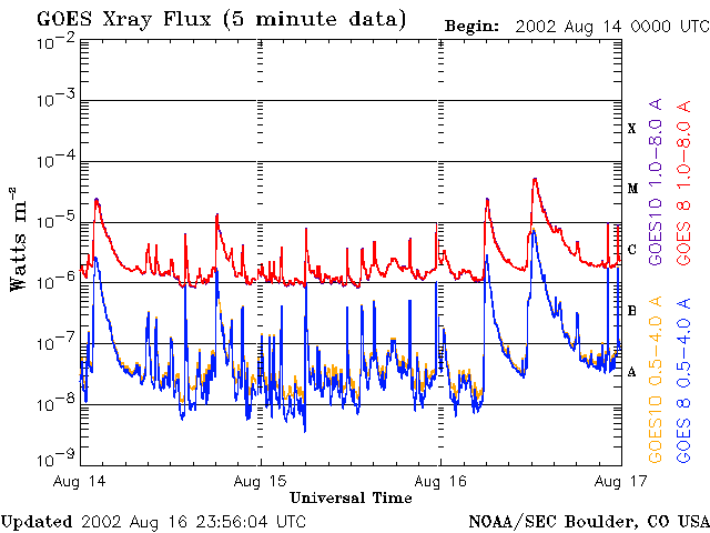 De operationele data in de bovenstaande grafiek werd aangepast om de schaalfactor te verwijderen die werd toegepast door het Space Weather Prediction Center (SWPC). Vanwege de SWPC-schaalfactor in de operationele data werden de zonnevlammen 42% kleiner gerapporteerd dan deze in de wetenschappelijke data. De schaalfactor werd ook verwijderd uit de lijst met zonnevlammen om de werkelijke fysieke eenheden weer te geven.