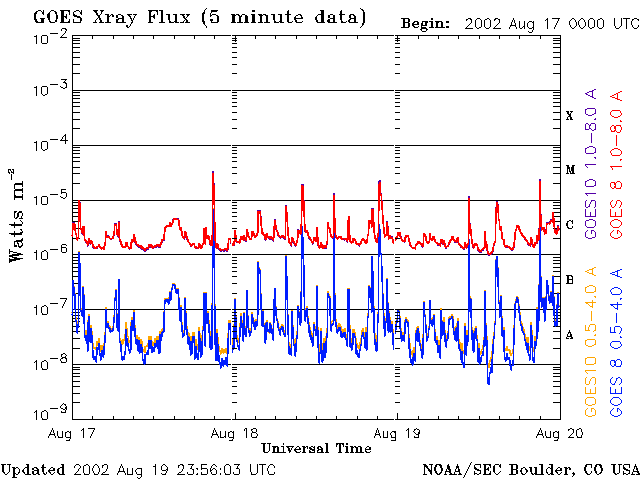 De operationele data in de bovenstaande grafiek werd aangepast om de schaalfactor te verwijderen die werd toegepast door het Space Weather Prediction Center (SWPC). Vanwege de SWPC-schaalfactor in de operationele data werden de zonnevlammen 42% kleiner gerapporteerd dan deze in de wetenschappelijke data. De schaalfactor werd ook verwijderd uit de lijst met zonnevlammen om de werkelijke fysieke eenheden weer te geven.