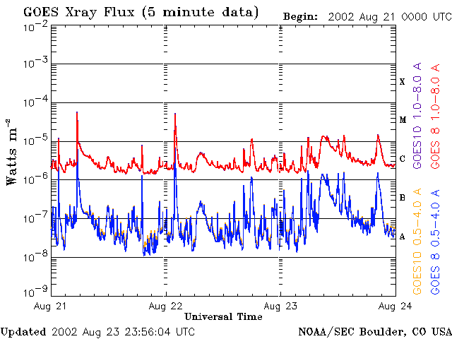 De operationele data in de bovenstaande grafiek werd aangepast om de schaalfactor te verwijderen die werd toegepast door het Space Weather Prediction Center (SWPC). Vanwege de SWPC-schaalfactor in de operationele data werden de zonnevlammen 42% kleiner gerapporteerd dan deze in de wetenschappelijke data. De schaalfactor werd ook verwijderd uit de lijst met zonnevlammen om de werkelijke fysieke eenheden weer te geven.