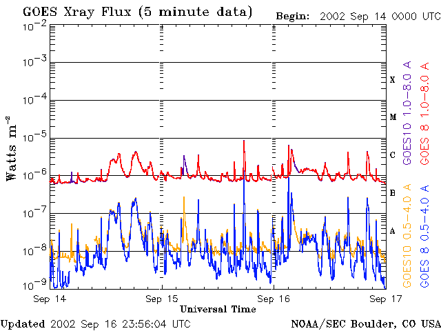 De operationele data in de bovenstaande grafiek werd aangepast om de schaalfactor te verwijderen die werd toegepast door het Space Weather Prediction Center (SWPC). Vanwege de SWPC-schaalfactor in de operationele data werden de zonnevlammen 42% kleiner gerapporteerd dan deze in de wetenschappelijke data. De schaalfactor werd ook verwijderd uit de lijst met zonnevlammen om de werkelijke fysieke eenheden weer te geven.
