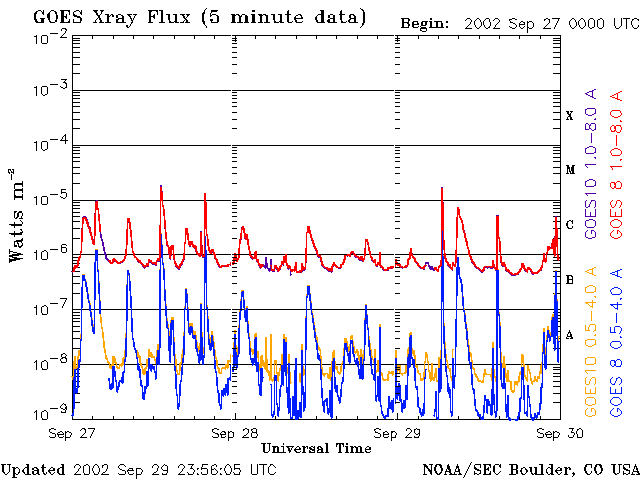 De operationele data in de bovenstaande grafiek werd aangepast om de schaalfactor te verwijderen die werd toegepast door het Space Weather Prediction Center (SWPC). Vanwege de SWPC-schaalfactor in de operationele data werden de zonnevlammen 42% kleiner gerapporteerd dan deze in de wetenschappelijke data. De schaalfactor werd ook verwijderd uit de lijst met zonnevlammen om de werkelijke fysieke eenheden weer te geven.