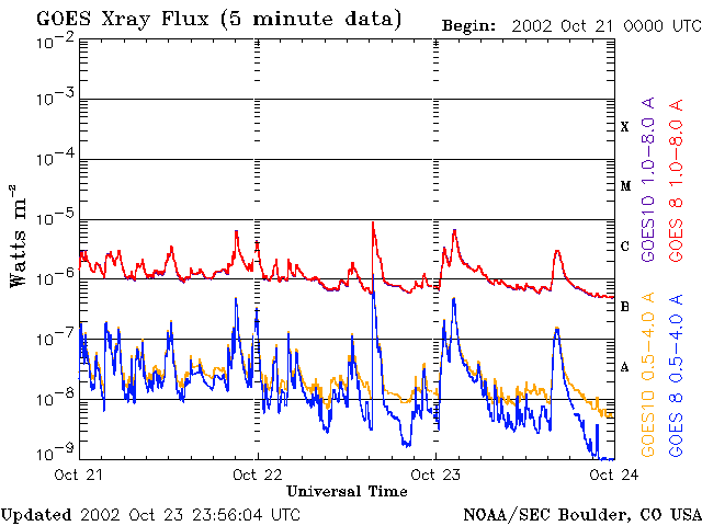 De operationele data in de bovenstaande grafiek werd aangepast om de schaalfactor te verwijderen die werd toegepast door het Space Weather Prediction Center (SWPC). Vanwege de SWPC-schaalfactor in de operationele data werden de zonnevlammen 42% kleiner gerapporteerd dan deze in de wetenschappelijke data. De schaalfactor werd ook verwijderd uit de lijst met zonnevlammen om de werkelijke fysieke eenheden weer te geven.