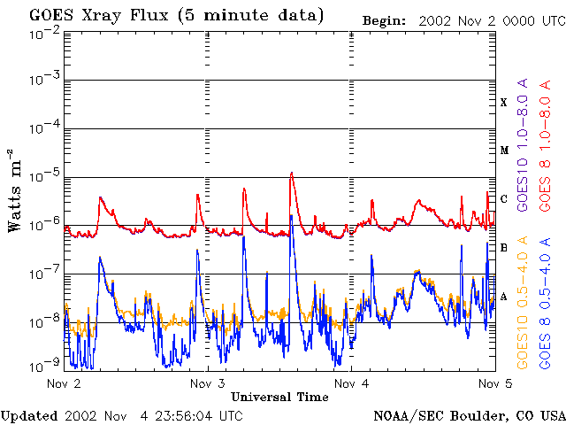 De operationele data in de bovenstaande grafiek werd aangepast om de schaalfactor te verwijderen die werd toegepast door het Space Weather Prediction Center (SWPC). Vanwege de SWPC-schaalfactor in de operationele data werden de zonnevlammen 42% kleiner gerapporteerd dan deze in de wetenschappelijke data. De schaalfactor werd ook verwijderd uit de lijst met zonnevlammen om de werkelijke fysieke eenheden weer te geven.