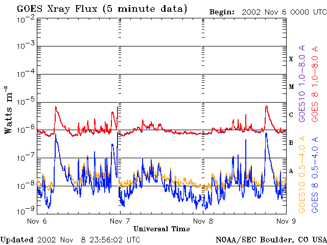 De operationele data in de bovenstaande grafiek werd aangepast om de schaalfactor te verwijderen die werd toegepast door het Space Weather Prediction Center (SWPC). Vanwege de SWPC-schaalfactor in de operationele data werden de zonnevlammen 42% kleiner gerapporteerd dan deze in de wetenschappelijke data. De schaalfactor werd ook verwijderd uit de lijst met zonnevlammen om de werkelijke fysieke eenheden weer te geven.