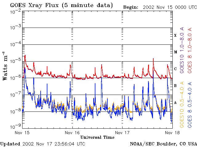 De operationele data in de bovenstaande grafiek werd aangepast om de schaalfactor te verwijderen die werd toegepast door het Space Weather Prediction Center (SWPC). Vanwege de SWPC-schaalfactor in de operationele data werden de zonnevlammen 42% kleiner gerapporteerd dan deze in de wetenschappelijke data. De schaalfactor werd ook verwijderd uit de lijst met zonnevlammen om de werkelijke fysieke eenheden weer te geven.