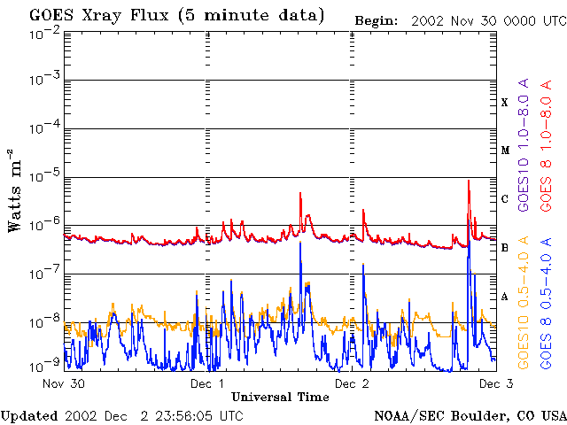 De operationele data in de bovenstaande grafiek werd aangepast om de schaalfactor te verwijderen die werd toegepast door het Space Weather Prediction Center (SWPC). Vanwege de SWPC-schaalfactor in de operationele data werden de zonnevlammen 42% kleiner gerapporteerd dan deze in de wetenschappelijke data. De schaalfactor werd ook verwijderd uit de lijst met zonnevlammen om de werkelijke fysieke eenheden weer te geven.