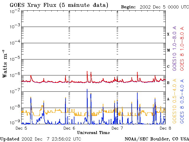 De operationele data in de bovenstaande grafiek werd aangepast om de schaalfactor te verwijderen die werd toegepast door het Space Weather Prediction Center (SWPC). Vanwege de SWPC-schaalfactor in de operationele data werden de zonnevlammen 42% kleiner gerapporteerd dan deze in de wetenschappelijke data. De schaalfactor werd ook verwijderd uit de lijst met zonnevlammen om de werkelijke fysieke eenheden weer te geven.