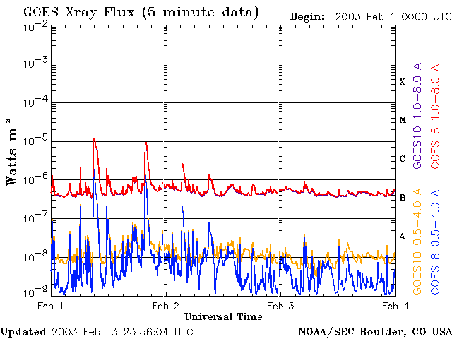 De operationele data in de bovenstaande grafiek werd aangepast om de schaalfactor te verwijderen die werd toegepast door het Space Weather Prediction Center (SWPC). Vanwege de SWPC-schaalfactor in de operationele data werden de zonnevlammen 42% kleiner gerapporteerd dan deze in de wetenschappelijke data. De schaalfactor werd ook verwijderd uit de lijst met zonnevlammen om de werkelijke fysieke eenheden weer te geven.