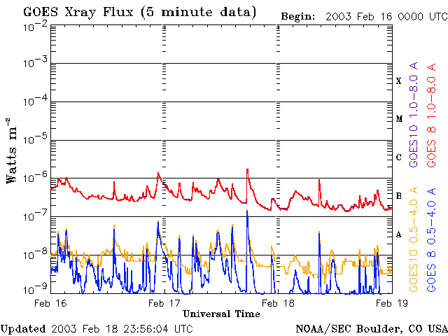 De operationele data in de bovenstaande grafiek werd aangepast om de schaalfactor te verwijderen die werd toegepast door het Space Weather Prediction Center (SWPC). Vanwege de SWPC-schaalfactor in de operationele data werden de zonnevlammen 42% kleiner gerapporteerd dan deze in de wetenschappelijke data. De schaalfactor werd ook verwijderd uit de lijst met zonnevlammen om de werkelijke fysieke eenheden weer te geven.