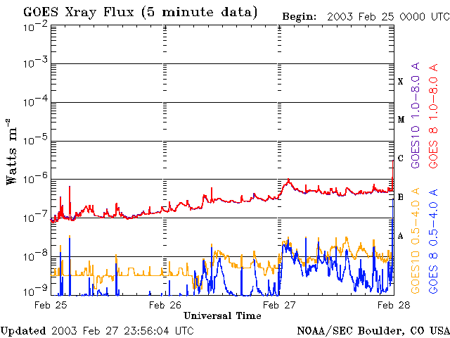 De operationele data in de bovenstaande grafiek werd aangepast om de schaalfactor te verwijderen die werd toegepast door het Space Weather Prediction Center (SWPC). Vanwege de SWPC-schaalfactor in de operationele data werden de zonnevlammen 42% kleiner gerapporteerd dan deze in de wetenschappelijke data. De schaalfactor werd ook verwijderd uit de lijst met zonnevlammen om de werkelijke fysieke eenheden weer te geven.