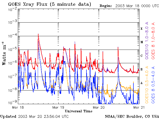 De operationele data in de bovenstaande grafiek werd aangepast om de schaalfactor te verwijderen die werd toegepast door het Space Weather Prediction Center (SWPC). Vanwege de SWPC-schaalfactor in de operationele data werden de zonnevlammen 42% kleiner gerapporteerd dan deze in de wetenschappelijke data. De schaalfactor werd ook verwijderd uit de lijst met zonnevlammen om de werkelijke fysieke eenheden weer te geven.