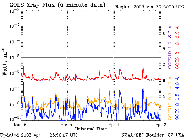 De operationele data in de bovenstaande grafiek werd aangepast om de schaalfactor te verwijderen die werd toegepast door het Space Weather Prediction Center (SWPC). Vanwege de SWPC-schaalfactor in de operationele data werden de zonnevlammen 42% kleiner gerapporteerd dan deze in de wetenschappelijke data. De schaalfactor werd ook verwijderd uit de lijst met zonnevlammen om de werkelijke fysieke eenheden weer te geven.