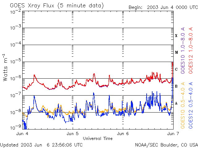 De operationele data in de bovenstaande grafiek werd aangepast om de schaalfactor te verwijderen die werd toegepast door het Space Weather Prediction Center (SWPC). Vanwege de SWPC-schaalfactor in de operationele data werden de zonnevlammen 42% kleiner gerapporteerd dan deze in de wetenschappelijke data. De schaalfactor werd ook verwijderd uit de lijst met zonnevlammen om de werkelijke fysieke eenheden weer te geven.
