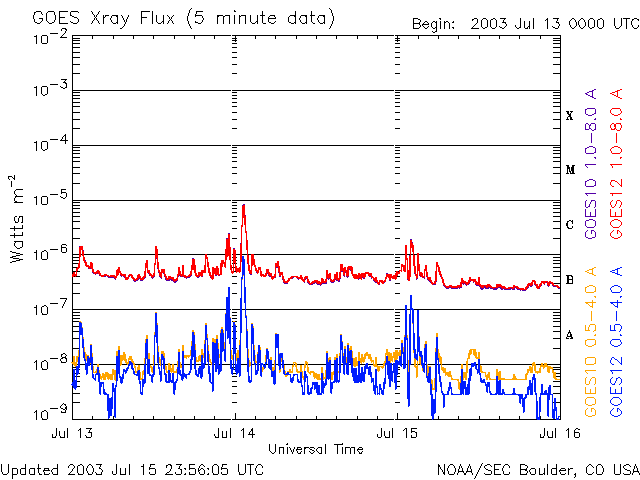 De operationele data in de bovenstaande grafiek werd aangepast om de schaalfactor te verwijderen die werd toegepast door het Space Weather Prediction Center (SWPC). Vanwege de SWPC-schaalfactor in de operationele data werden de zonnevlammen 42% kleiner gerapporteerd dan deze in de wetenschappelijke data. De schaalfactor werd ook verwijderd uit de lijst met zonnevlammen om de werkelijke fysieke eenheden weer te geven.