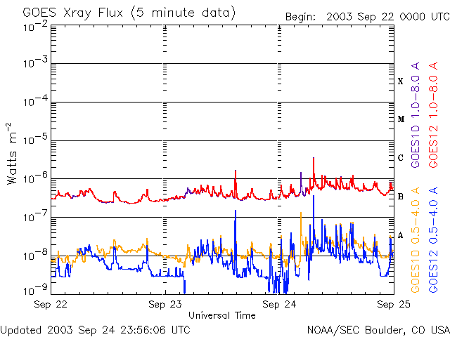 De operationele data in de bovenstaande grafiek werd aangepast om de schaalfactor te verwijderen die werd toegepast door het Space Weather Prediction Center (SWPC). Vanwege de SWPC-schaalfactor in de operationele data werden de zonnevlammen 42% kleiner gerapporteerd dan deze in de wetenschappelijke data. De schaalfactor werd ook verwijderd uit de lijst met zonnevlammen om de werkelijke fysieke eenheden weer te geven.