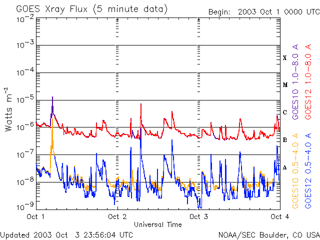 De operationele data in de bovenstaande grafiek werd aangepast om de schaalfactor te verwijderen die werd toegepast door het Space Weather Prediction Center (SWPC). Vanwege de SWPC-schaalfactor in de operationele data werden de zonnevlammen 42% kleiner gerapporteerd dan deze in de wetenschappelijke data. De schaalfactor werd ook verwijderd uit de lijst met zonnevlammen om de werkelijke fysieke eenheden weer te geven.