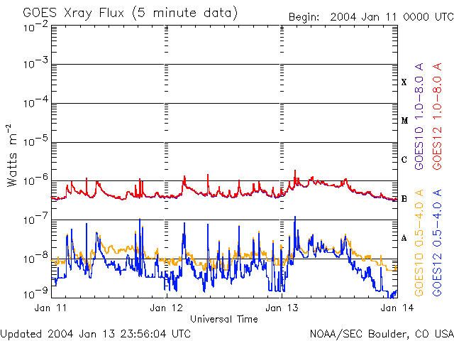 De operationele data in de bovenstaande grafiek werd aangepast om de schaalfactor te verwijderen die werd toegepast door het Space Weather Prediction Center (SWPC). Vanwege de SWPC-schaalfactor in de operationele data werden de zonnevlammen 42% kleiner gerapporteerd dan deze in de wetenschappelijke data. De schaalfactor werd ook verwijderd uit de lijst met zonnevlammen om de werkelijke fysieke eenheden weer te geven.