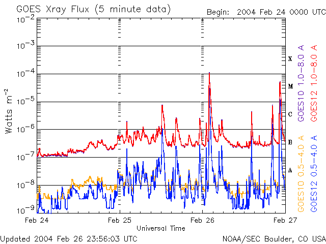 De operationele data in de bovenstaande grafiek werd aangepast om de schaalfactor te verwijderen die werd toegepast door het Space Weather Prediction Center (SWPC). Vanwege de SWPC-schaalfactor in de operationele data werden de zonnevlammen 42% kleiner gerapporteerd dan deze in de wetenschappelijke data. De schaalfactor werd ook verwijderd uit de lijst met zonnevlammen om de werkelijke fysieke eenheden weer te geven.