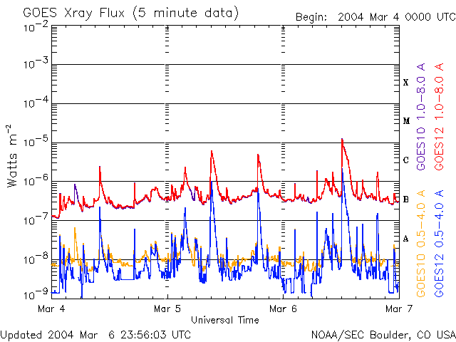 De operationele data in de bovenstaande grafiek werd aangepast om de schaalfactor te verwijderen die werd toegepast door het Space Weather Prediction Center (SWPC). Vanwege de SWPC-schaalfactor in de operationele data werden de zonnevlammen 42% kleiner gerapporteerd dan deze in de wetenschappelijke data. De schaalfactor werd ook verwijderd uit de lijst met zonnevlammen om de werkelijke fysieke eenheden weer te geven.
