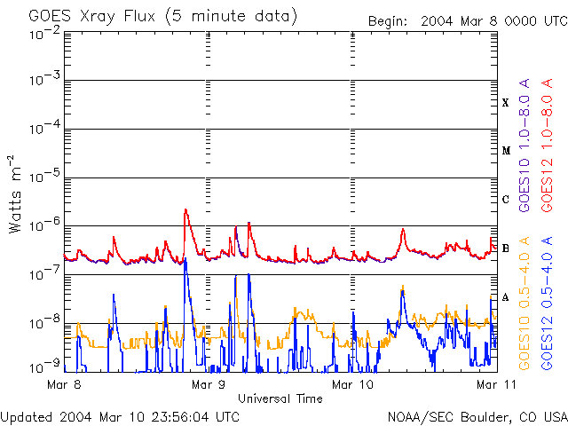 De operationele data in de bovenstaande grafiek werd aangepast om de schaalfactor te verwijderen die werd toegepast door het Space Weather Prediction Center (SWPC). Vanwege de SWPC-schaalfactor in de operationele data werden de zonnevlammen 42% kleiner gerapporteerd dan deze in de wetenschappelijke data. De schaalfactor werd ook verwijderd uit de lijst met zonnevlammen om de werkelijke fysieke eenheden weer te geven.