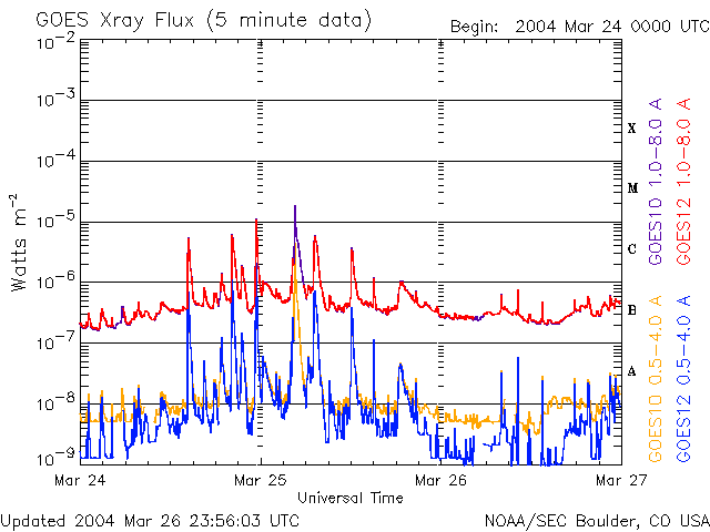 De operationele data in de bovenstaande grafiek werd aangepast om de schaalfactor te verwijderen die werd toegepast door het Space Weather Prediction Center (SWPC). Vanwege de SWPC-schaalfactor in de operationele data werden de zonnevlammen 42% kleiner gerapporteerd dan deze in de wetenschappelijke data. De schaalfactor werd ook verwijderd uit de lijst met zonnevlammen om de werkelijke fysieke eenheden weer te geven.