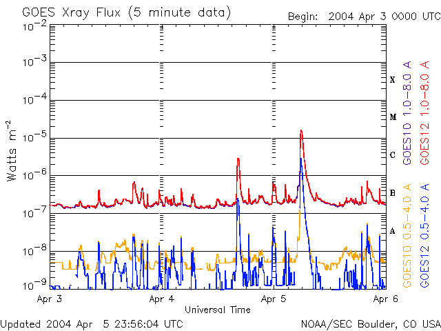 De operationele data in de bovenstaande grafiek werd aangepast om de schaalfactor te verwijderen die werd toegepast door het Space Weather Prediction Center (SWPC). Vanwege de SWPC-schaalfactor in de operationele data werden de zonnevlammen 42% kleiner gerapporteerd dan deze in de wetenschappelijke data. De schaalfactor werd ook verwijderd uit de lijst met zonnevlammen om de werkelijke fysieke eenheden weer te geven.