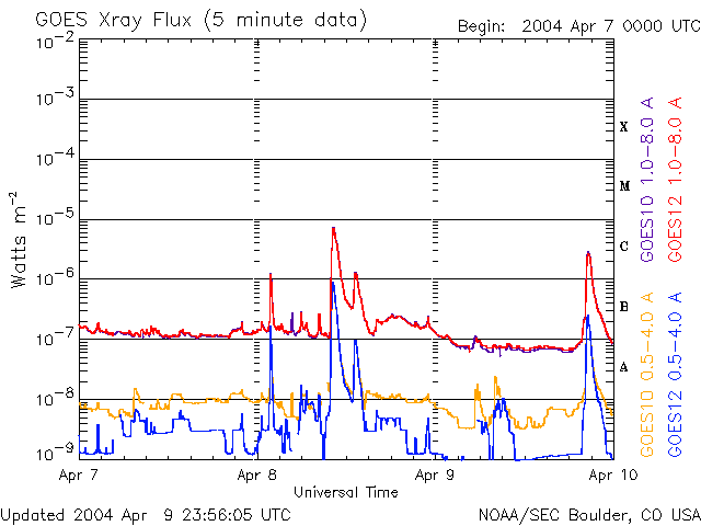 De operationele data in de bovenstaande grafiek werd aangepast om de schaalfactor te verwijderen die werd toegepast door het Space Weather Prediction Center (SWPC). Vanwege de SWPC-schaalfactor in de operationele data werden de zonnevlammen 42% kleiner gerapporteerd dan deze in de wetenschappelijke data. De schaalfactor werd ook verwijderd uit de lijst met zonnevlammen om de werkelijke fysieke eenheden weer te geven.