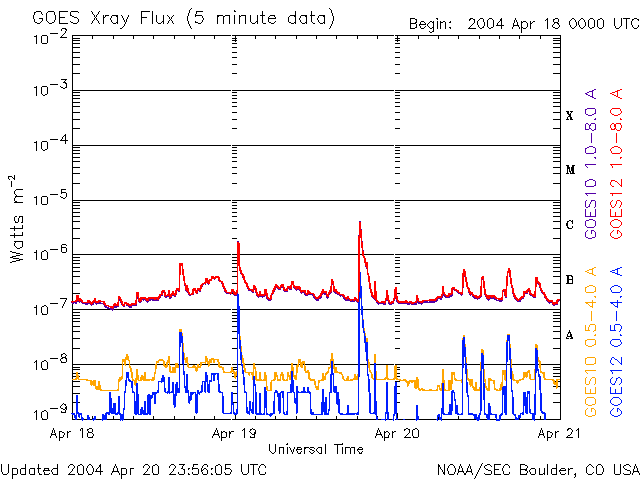 De operationele data in de bovenstaande grafiek werd aangepast om de schaalfactor te verwijderen die werd toegepast door het Space Weather Prediction Center (SWPC). Vanwege de SWPC-schaalfactor in de operationele data werden de zonnevlammen 42% kleiner gerapporteerd dan deze in de wetenschappelijke data. De schaalfactor werd ook verwijderd uit de lijst met zonnevlammen om de werkelijke fysieke eenheden weer te geven.