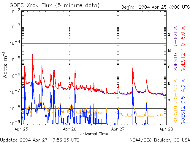 De operationele data in de bovenstaande grafiek werd aangepast om de schaalfactor te verwijderen die werd toegepast door het Space Weather Prediction Center (SWPC). Vanwege de SWPC-schaalfactor in de operationele data werden de zonnevlammen 42% kleiner gerapporteerd dan deze in de wetenschappelijke data. De schaalfactor werd ook verwijderd uit de lijst met zonnevlammen om de werkelijke fysieke eenheden weer te geven.