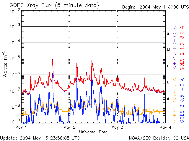 De operationele data in de bovenstaande grafiek werd aangepast om de schaalfactor te verwijderen die werd toegepast door het Space Weather Prediction Center (SWPC). Vanwege de SWPC-schaalfactor in de operationele data werden de zonnevlammen 42% kleiner gerapporteerd dan deze in de wetenschappelijke data. De schaalfactor werd ook verwijderd uit de lijst met zonnevlammen om de werkelijke fysieke eenheden weer te geven.