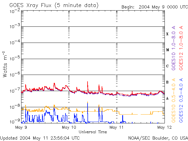 De operationele data in de bovenstaande grafiek werd aangepast om de schaalfactor te verwijderen die werd toegepast door het Space Weather Prediction Center (SWPC). Vanwege de SWPC-schaalfactor in de operationele data werden de zonnevlammen 42% kleiner gerapporteerd dan deze in de wetenschappelijke data. De schaalfactor werd ook verwijderd uit de lijst met zonnevlammen om de werkelijke fysieke eenheden weer te geven.