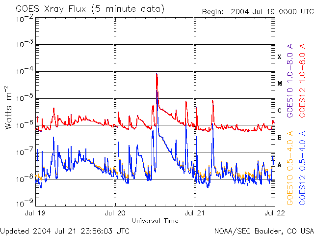 De operationele data in de bovenstaande grafiek werd aangepast om de schaalfactor te verwijderen die werd toegepast door het Space Weather Prediction Center (SWPC). Vanwege de SWPC-schaalfactor in de operationele data werden de zonnevlammen 42% kleiner gerapporteerd dan deze in de wetenschappelijke data. De schaalfactor werd ook verwijderd uit de lijst met zonnevlammen om de werkelijke fysieke eenheden weer te geven.