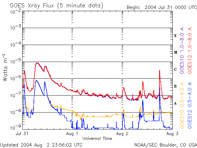 De operationele data in de bovenstaande grafiek werd aangepast om de schaalfactor te verwijderen die werd toegepast door het Space Weather Prediction Center (SWPC). Vanwege de SWPC-schaalfactor in de operationele data werden de zonnevlammen 42% kleiner gerapporteerd dan deze in de wetenschappelijke data. De schaalfactor werd ook verwijderd uit de lijst met zonnevlammen om de werkelijke fysieke eenheden weer te geven.