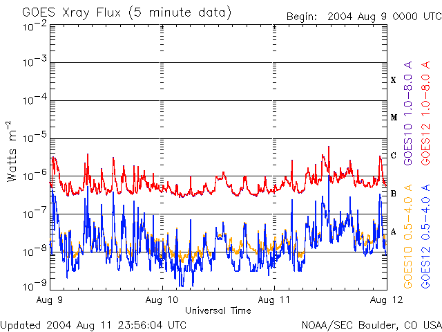 De operationele data in de bovenstaande grafiek werd aangepast om de schaalfactor te verwijderen die werd toegepast door het Space Weather Prediction Center (SWPC). Vanwege de SWPC-schaalfactor in de operationele data werden de zonnevlammen 42% kleiner gerapporteerd dan deze in de wetenschappelijke data. De schaalfactor werd ook verwijderd uit de lijst met zonnevlammen om de werkelijke fysieke eenheden weer te geven.
