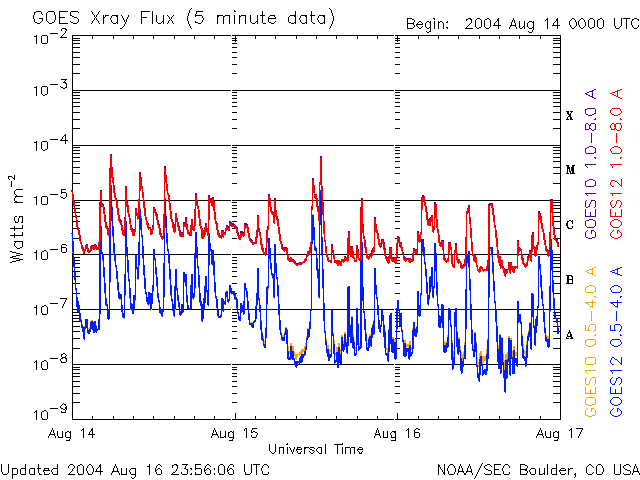 De operationele data in de bovenstaande grafiek werd aangepast om de schaalfactor te verwijderen die werd toegepast door het Space Weather Prediction Center (SWPC). Vanwege de SWPC-schaalfactor in de operationele data werden de zonnevlammen 42% kleiner gerapporteerd dan deze in de wetenschappelijke data. De schaalfactor werd ook verwijderd uit de lijst met zonnevlammen om de werkelijke fysieke eenheden weer te geven.