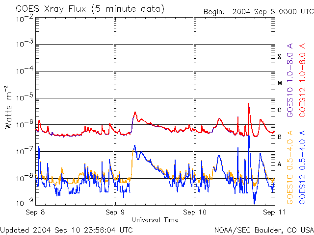 De operationele data in de bovenstaande grafiek werd aangepast om de schaalfactor te verwijderen die werd toegepast door het Space Weather Prediction Center (SWPC). Vanwege de SWPC-schaalfactor in de operationele data werden de zonnevlammen 42% kleiner gerapporteerd dan deze in de wetenschappelijke data. De schaalfactor werd ook verwijderd uit de lijst met zonnevlammen om de werkelijke fysieke eenheden weer te geven.