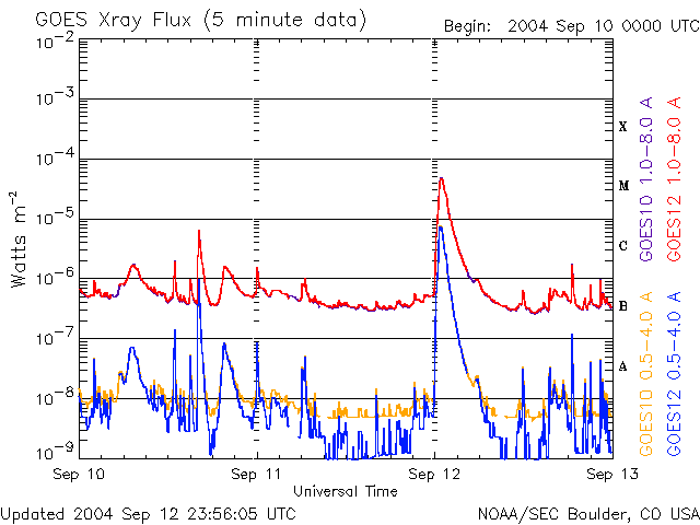 De operationele data in de bovenstaande grafiek werd aangepast om de schaalfactor te verwijderen die werd toegepast door het Space Weather Prediction Center (SWPC). Vanwege de SWPC-schaalfactor in de operationele data werden de zonnevlammen 42% kleiner gerapporteerd dan deze in de wetenschappelijke data. De schaalfactor werd ook verwijderd uit de lijst met zonnevlammen om de werkelijke fysieke eenheden weer te geven.