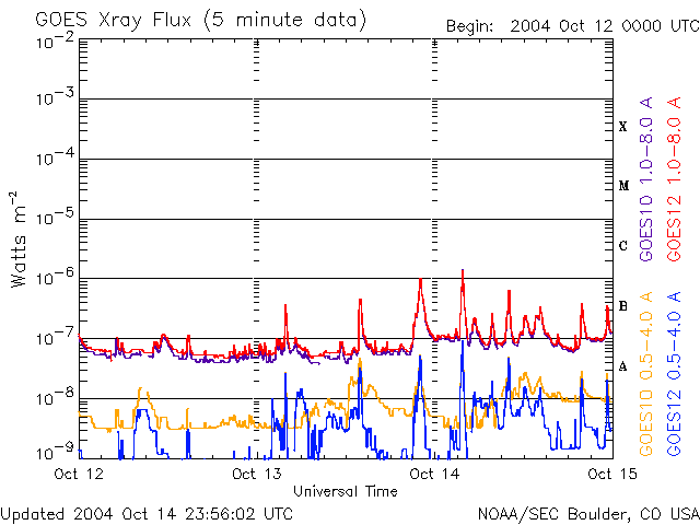 De operationele data in de bovenstaande grafiek werd aangepast om de schaalfactor te verwijderen die werd toegepast door het Space Weather Prediction Center (SWPC). Vanwege de SWPC-schaalfactor in de operationele data werden de zonnevlammen 42% kleiner gerapporteerd dan deze in de wetenschappelijke data. De schaalfactor werd ook verwijderd uit de lijst met zonnevlammen om de werkelijke fysieke eenheden weer te geven.
