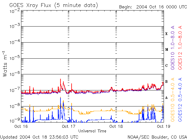 De operationele data in de bovenstaande grafiek werd aangepast om de schaalfactor te verwijderen die werd toegepast door het Space Weather Prediction Center (SWPC). Vanwege de SWPC-schaalfactor in de operationele data werden de zonnevlammen 42% kleiner gerapporteerd dan deze in de wetenschappelijke data. De schaalfactor werd ook verwijderd uit de lijst met zonnevlammen om de werkelijke fysieke eenheden weer te geven.