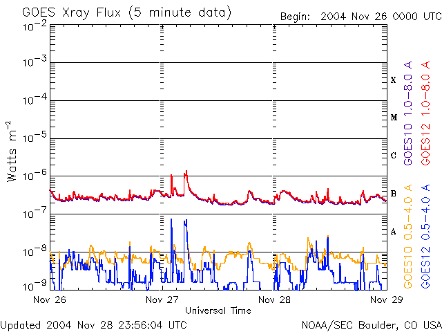 De operationele data in de bovenstaande grafiek werd aangepast om de schaalfactor te verwijderen die werd toegepast door het Space Weather Prediction Center (SWPC). Vanwege de SWPC-schaalfactor in de operationele data werden de zonnevlammen 42% kleiner gerapporteerd dan deze in de wetenschappelijke data. De schaalfactor werd ook verwijderd uit de lijst met zonnevlammen om de werkelijke fysieke eenheden weer te geven.