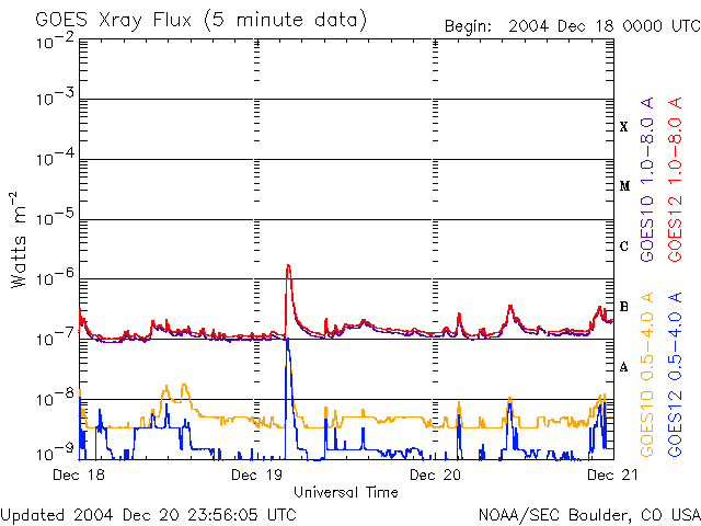 De operationele data in de bovenstaande grafiek werd aangepast om de schaalfactor te verwijderen die werd toegepast door het Space Weather Prediction Center (SWPC). Vanwege de SWPC-schaalfactor in de operationele data werden de zonnevlammen 42% kleiner gerapporteerd dan deze in de wetenschappelijke data. De schaalfactor werd ook verwijderd uit de lijst met zonnevlammen om de werkelijke fysieke eenheden weer te geven.