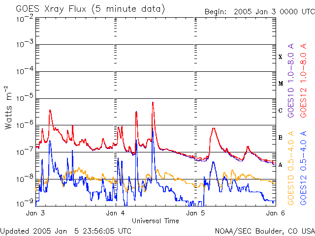 De operationele data in de bovenstaande grafiek werd aangepast om de schaalfactor te verwijderen die werd toegepast door het Space Weather Prediction Center (SWPC). Vanwege de SWPC-schaalfactor in de operationele data werden de zonnevlammen 42% kleiner gerapporteerd dan deze in de wetenschappelijke data. De schaalfactor werd ook verwijderd uit de lijst met zonnevlammen om de werkelijke fysieke eenheden weer te geven.