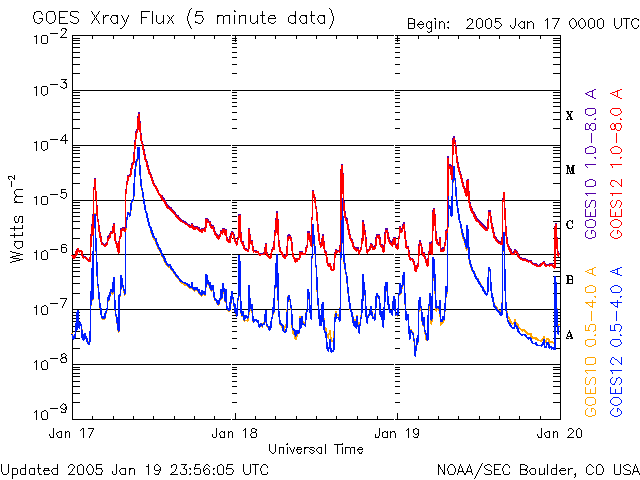 De operationele data in de bovenstaande grafiek werd aangepast om de schaalfactor te verwijderen die werd toegepast door het Space Weather Prediction Center (SWPC). Vanwege de SWPC-schaalfactor in de operationele data werden de zonnevlammen 42% kleiner gerapporteerd dan deze in de wetenschappelijke data. De schaalfactor werd ook verwijderd uit de lijst met zonnevlammen om de werkelijke fysieke eenheden weer te geven.