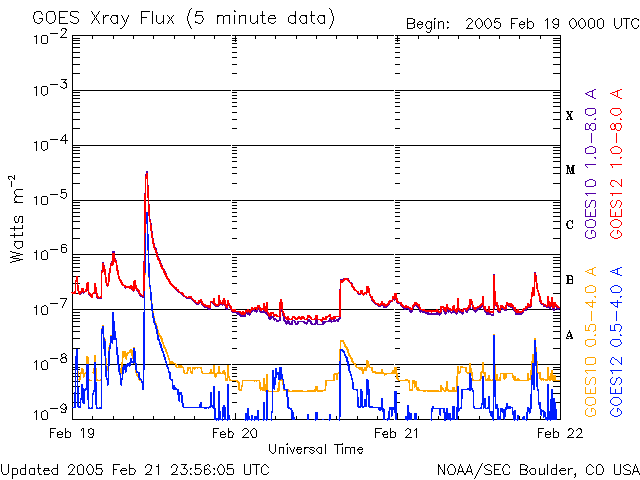 De operationele data in de bovenstaande grafiek werd aangepast om de schaalfactor te verwijderen die werd toegepast door het Space Weather Prediction Center (SWPC). Vanwege de SWPC-schaalfactor in de operationele data werden de zonnevlammen 42% kleiner gerapporteerd dan deze in de wetenschappelijke data. De schaalfactor werd ook verwijderd uit de lijst met zonnevlammen om de werkelijke fysieke eenheden weer te geven.