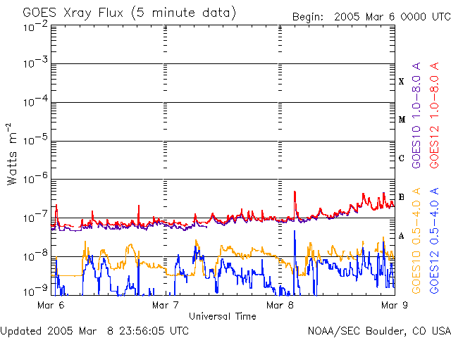 De operationele data in de bovenstaande grafiek werd aangepast om de schaalfactor te verwijderen die werd toegepast door het Space Weather Prediction Center (SWPC). Vanwege de SWPC-schaalfactor in de operationele data werden de zonnevlammen 42% kleiner gerapporteerd dan deze in de wetenschappelijke data. De schaalfactor werd ook verwijderd uit de lijst met zonnevlammen om de werkelijke fysieke eenheden weer te geven.