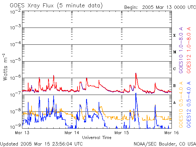De operationele data in de bovenstaande grafiek werd aangepast om de schaalfactor te verwijderen die werd toegepast door het Space Weather Prediction Center (SWPC). Vanwege de SWPC-schaalfactor in de operationele data werden de zonnevlammen 42% kleiner gerapporteerd dan deze in de wetenschappelijke data. De schaalfactor werd ook verwijderd uit de lijst met zonnevlammen om de werkelijke fysieke eenheden weer te geven.