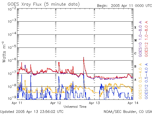 De operationele data in de bovenstaande grafiek werd aangepast om de schaalfactor te verwijderen die werd toegepast door het Space Weather Prediction Center (SWPC). Vanwege de SWPC-schaalfactor in de operationele data werden de zonnevlammen 42% kleiner gerapporteerd dan deze in de wetenschappelijke data. De schaalfactor werd ook verwijderd uit de lijst met zonnevlammen om de werkelijke fysieke eenheden weer te geven.
