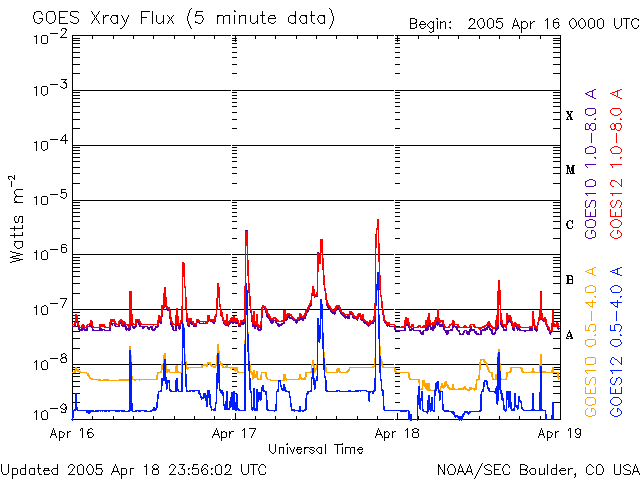 De operationele data in de bovenstaande grafiek werd aangepast om de schaalfactor te verwijderen die werd toegepast door het Space Weather Prediction Center (SWPC). Vanwege de SWPC-schaalfactor in de operationele data werden de zonnevlammen 42% kleiner gerapporteerd dan deze in de wetenschappelijke data. De schaalfactor werd ook verwijderd uit de lijst met zonnevlammen om de werkelijke fysieke eenheden weer te geven.