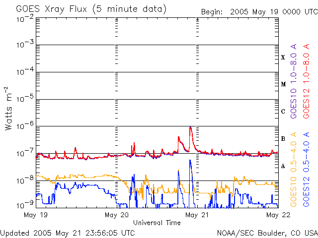 De operationele data in de bovenstaande grafiek werd aangepast om de schaalfactor te verwijderen die werd toegepast door het Space Weather Prediction Center (SWPC). Vanwege de SWPC-schaalfactor in de operationele data werden de zonnevlammen 42% kleiner gerapporteerd dan deze in de wetenschappelijke data. De schaalfactor werd ook verwijderd uit de lijst met zonnevlammen om de werkelijke fysieke eenheden weer te geven.