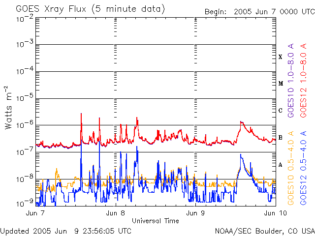 De operationele data in de bovenstaande grafiek werd aangepast om de schaalfactor te verwijderen die werd toegepast door het Space Weather Prediction Center (SWPC). Vanwege de SWPC-schaalfactor in de operationele data werden de zonnevlammen 42% kleiner gerapporteerd dan deze in de wetenschappelijke data. De schaalfactor werd ook verwijderd uit de lijst met zonnevlammen om de werkelijke fysieke eenheden weer te geven.